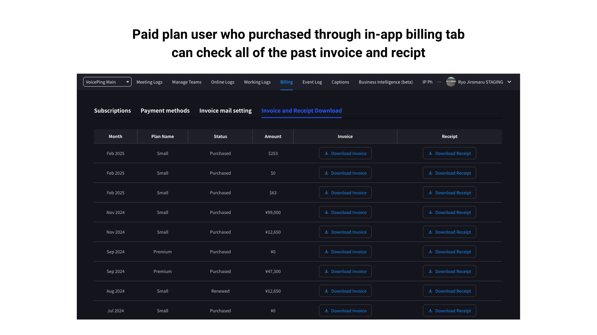 Managing your invoices just got simpler with the new Invoice Tab on the web app. You can now download receipts directly, with improved error handling and clearer status updates for your purchases and subscriptions.