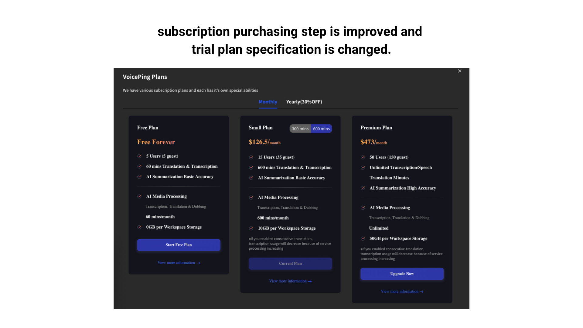 The plan price card has been revamped with a cleaner design and localized labels making it easier to understand your options and upgrade when ready.