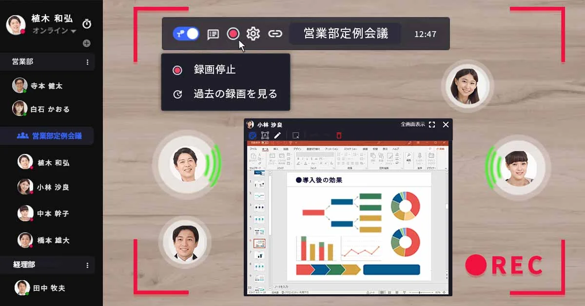 会議に出席できなかったメンバーへの情報伝達も、会議の録画で解決します。