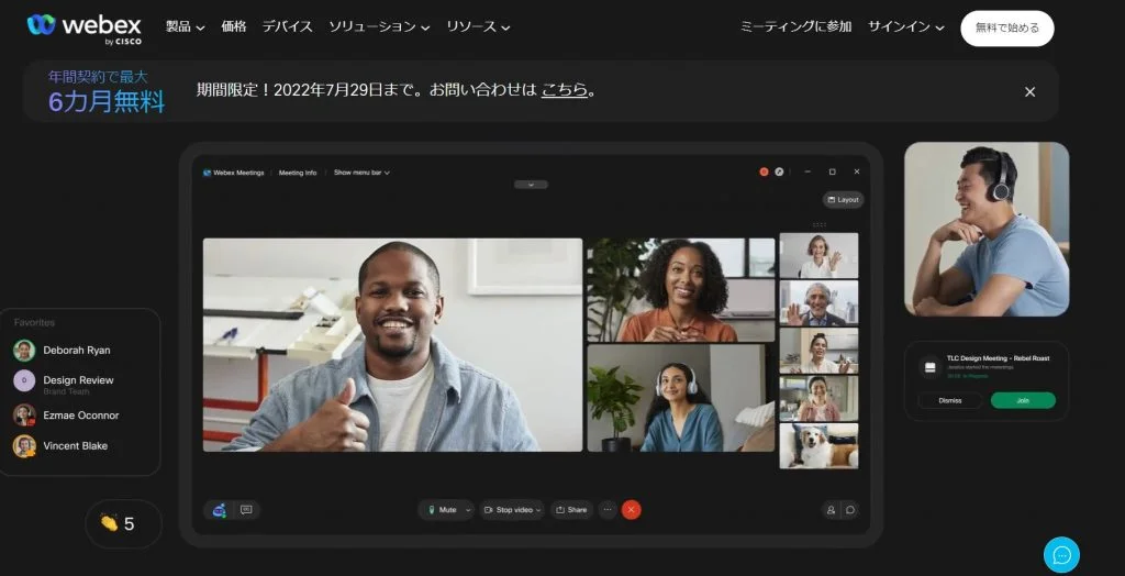 Zoomと並び高いシェアを誇るCisco Webex Meetings。