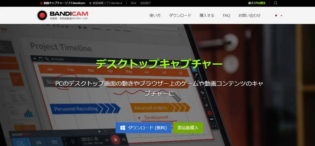Bandicam はWindows用の万能画面キャプチャーソフト。PCの音とマイクの音声を同時にキャプチャーできるのでWeb会議の録画にも適しています。